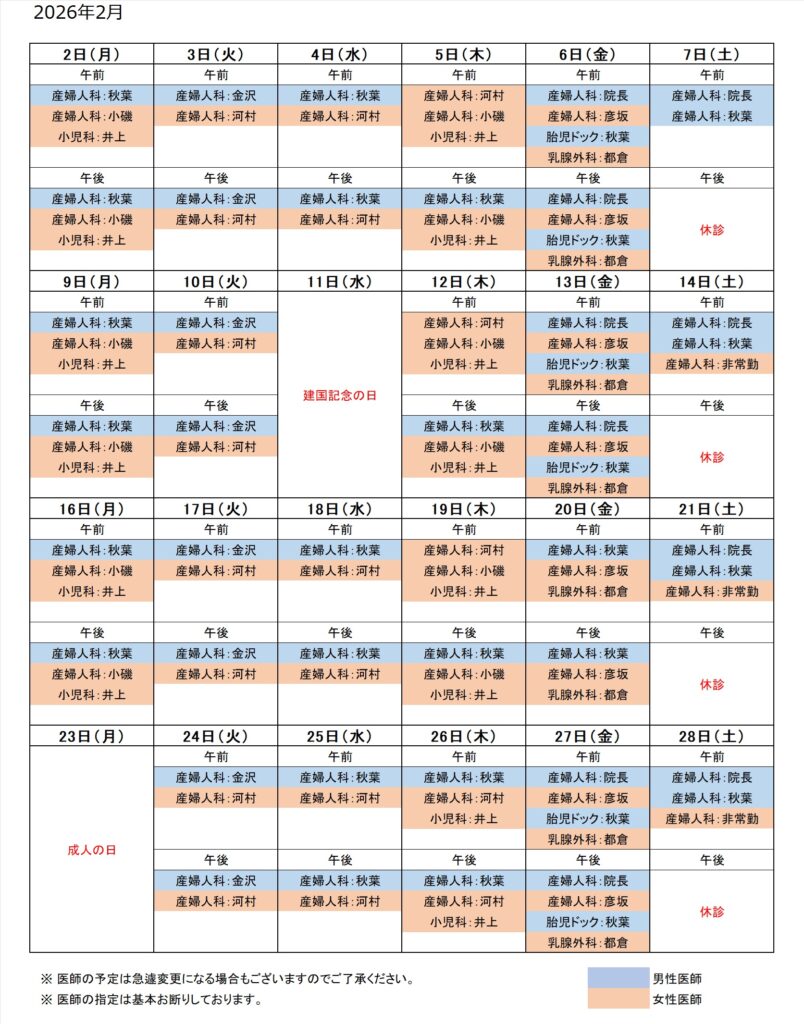 ※医師の予定は急遽変更になる場合がございますのでご了承ください。
