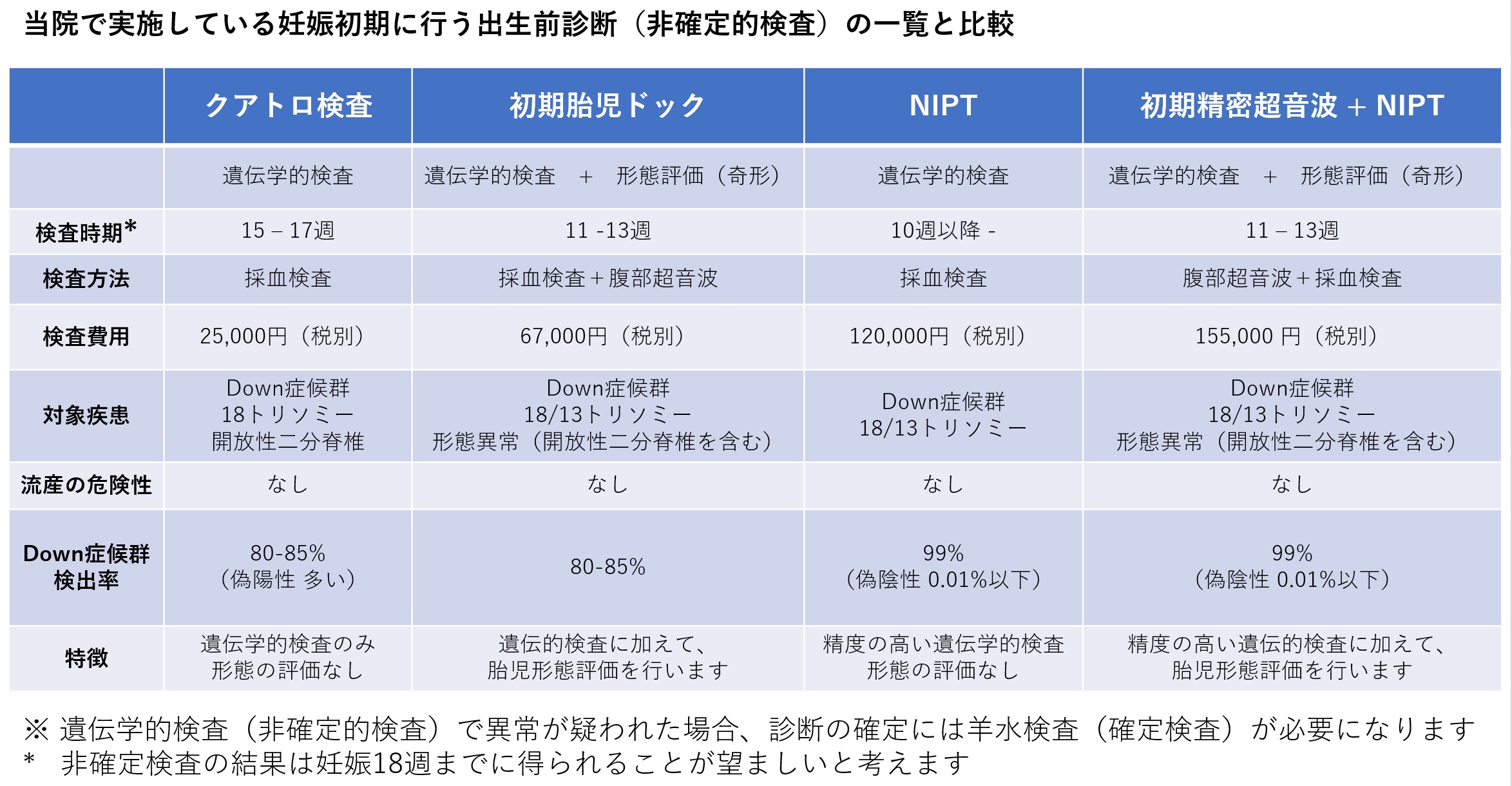- ・ 初期胎児ドックや結果説明は、妊婦健診と同じ日に受診することは出来ません。